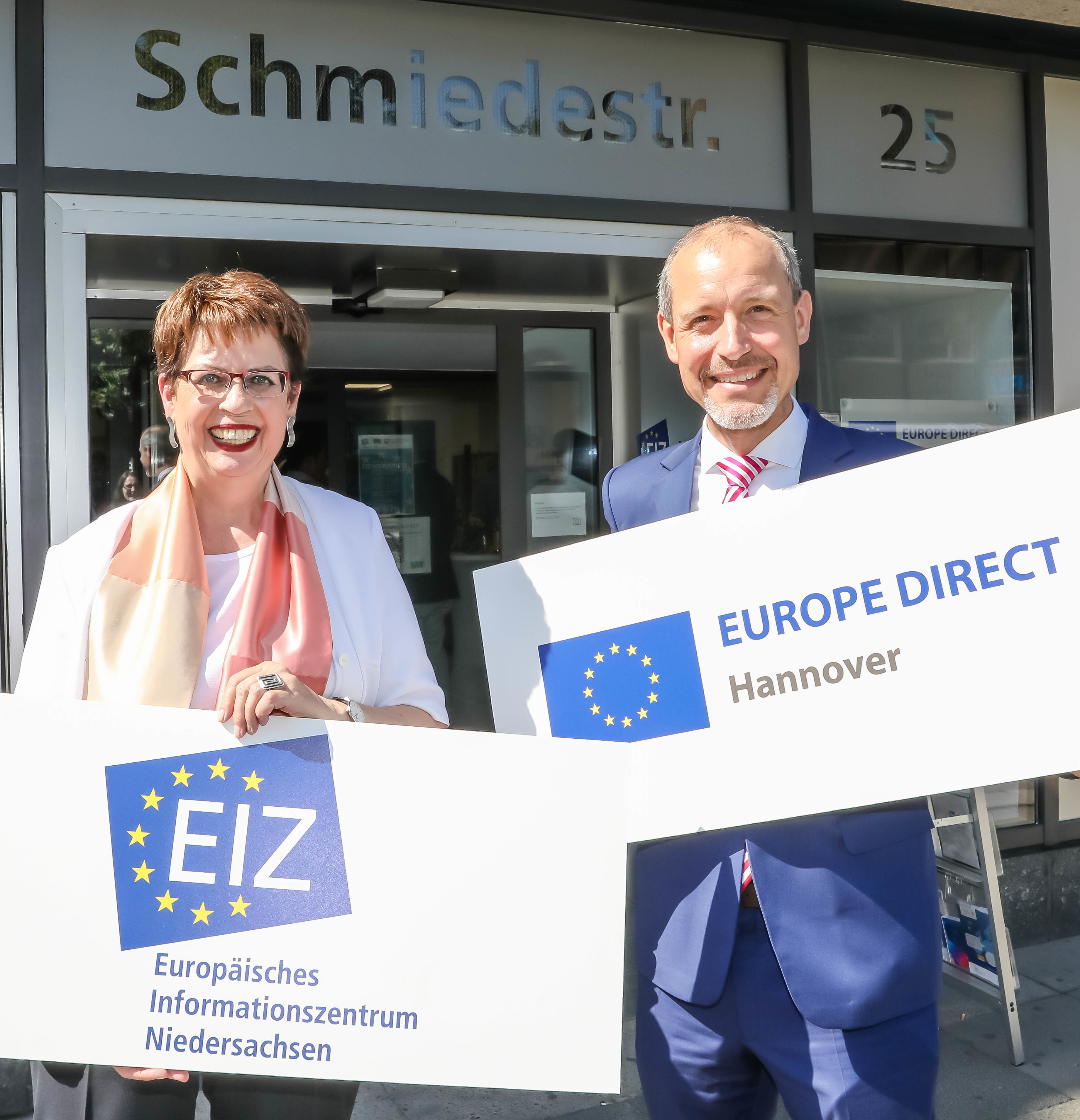 Das EIZ ist dem Niedersächsischen Europaministerium zugeordnet und unterstützt Bürgerinnen und Bürger seit 2001 bei der Suche nach Informationen über die Europäische Union, stellt Kontakte her, vernetzt und organisiert unter anderem Informationskampagnen und Veranstaltungen zu aktuellen europäischen Themen. Vor dem Umzug in die Schmiedestraße lagen die EIZ-Räumlichkeiten am Aegidientorplatz (Aegi) in Hannover.„Barrierefrei erreichbar und fußläufig zum Kern der Innenstadt – mit dem neuen Standort des EIZ lässt sich Europa ganz leicht entdecken“, sagte Honé am Rande des Sommerfests. Gerade in Sachen Europa sei der niedrigschwellige Austausch zwischen EU und Bürgerinnen und Bürgern extrem wichtig.