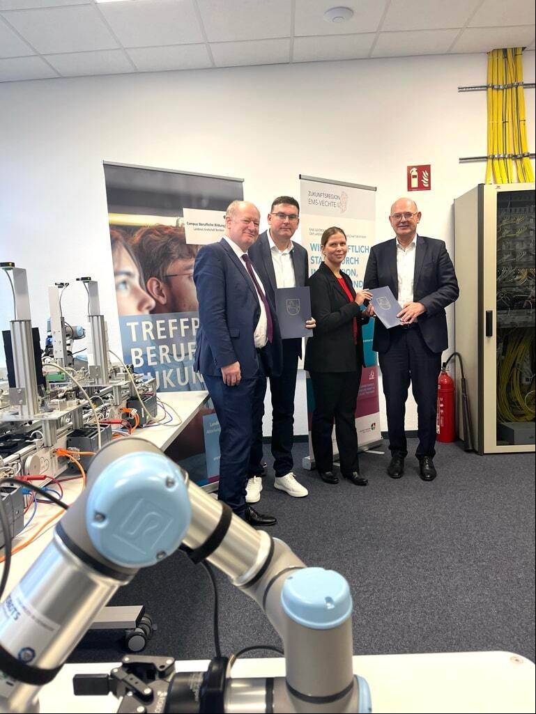 Von einer Förderung in Höhe von 88.063,77 Euro aus EFRE-Mitteln profitieren die technisch-berufsbildenden Schulen der Region: die gewerbliche berufsbildende Schule Grafschaft Bentheim sowie die BBSn Papenburg, Lingen und Meppen. Sie werden mit jeweils vier kollaborierenden Robotern (Cobots) sowie Zubehör und Software ausgestattet. So lernen die Schülerinnen und Schüler frühzeitig den Umgang mit modernen Robotik-Technologien, was sie auf zukünftige Anforderungen des Arbeitsmarktes vorbereitet.
