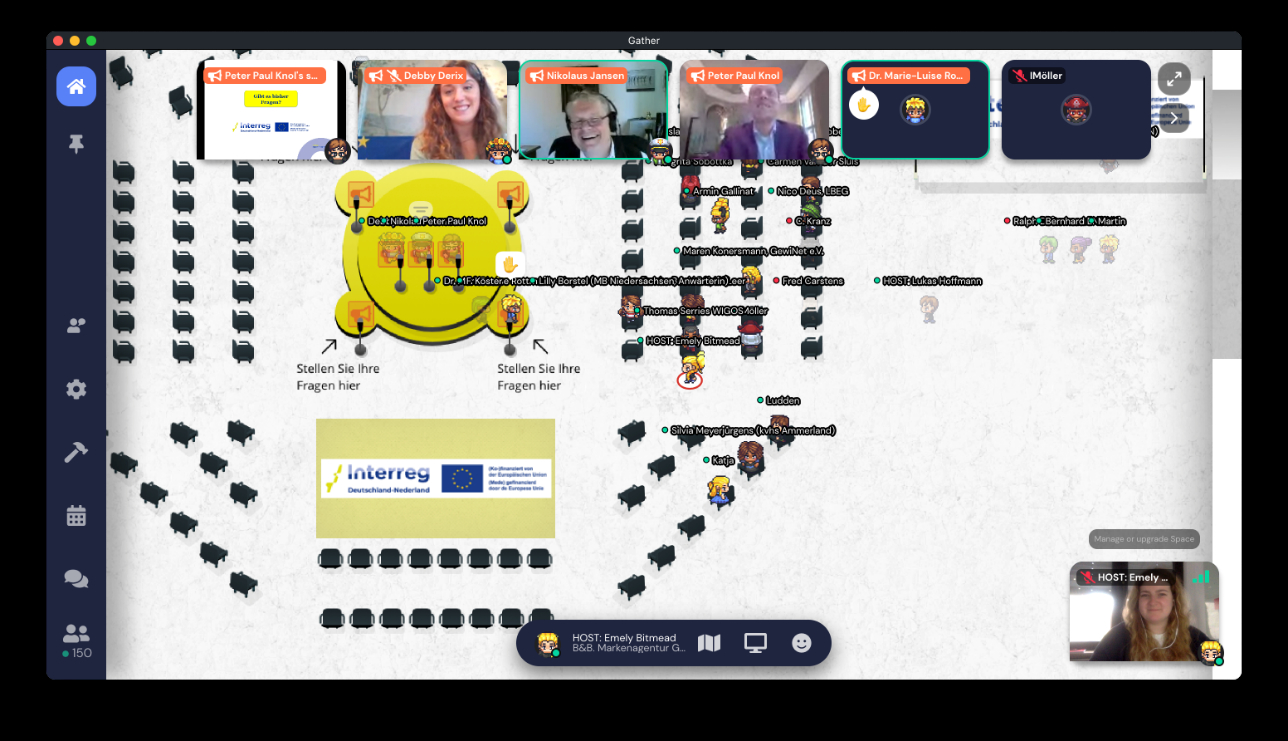 In den Programmforen hatten die Teilnehmer*innen die Gelegenheit, sich zu den kommenden Programmen zu informieren und aktiv Fragen zu stellen. Hierzu wurden die sechs Programme im Allgemeinen und mit Blick auf die neue Förderperiode durch Vertreter*innen der Programmsekretariate bzw. der nationalen Kontaktstellen vorgestellt. Diese standen im Anschluss an die Vorträge zusammen mit Vertreter*innen aus Bremen und Niedersachsen für Fragen und zum Austausch zur Verfügung. Im sogenannten Gather-Space konnten in den Pausen im interaktiven Format neue Kontakte geknüpft und neue Projektideen miteinander ausgetauscht werden.
