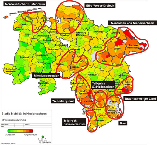 Die Regionale Landesentwicklung hat für diese Zielsetzung die Studie „Mobilität in ländlichen Räumen in Niedersachsen“ herausgegeben. In der Studie werden die Situation im Flächenland Niedersachsen mit seinen unterschiedlichen ländlichen Regionen untersucht, die Herausforderungen dargestellt und Handlungsempfehlungen für die Landespolitik sowie die regionale und lokale Ebene gegeben.