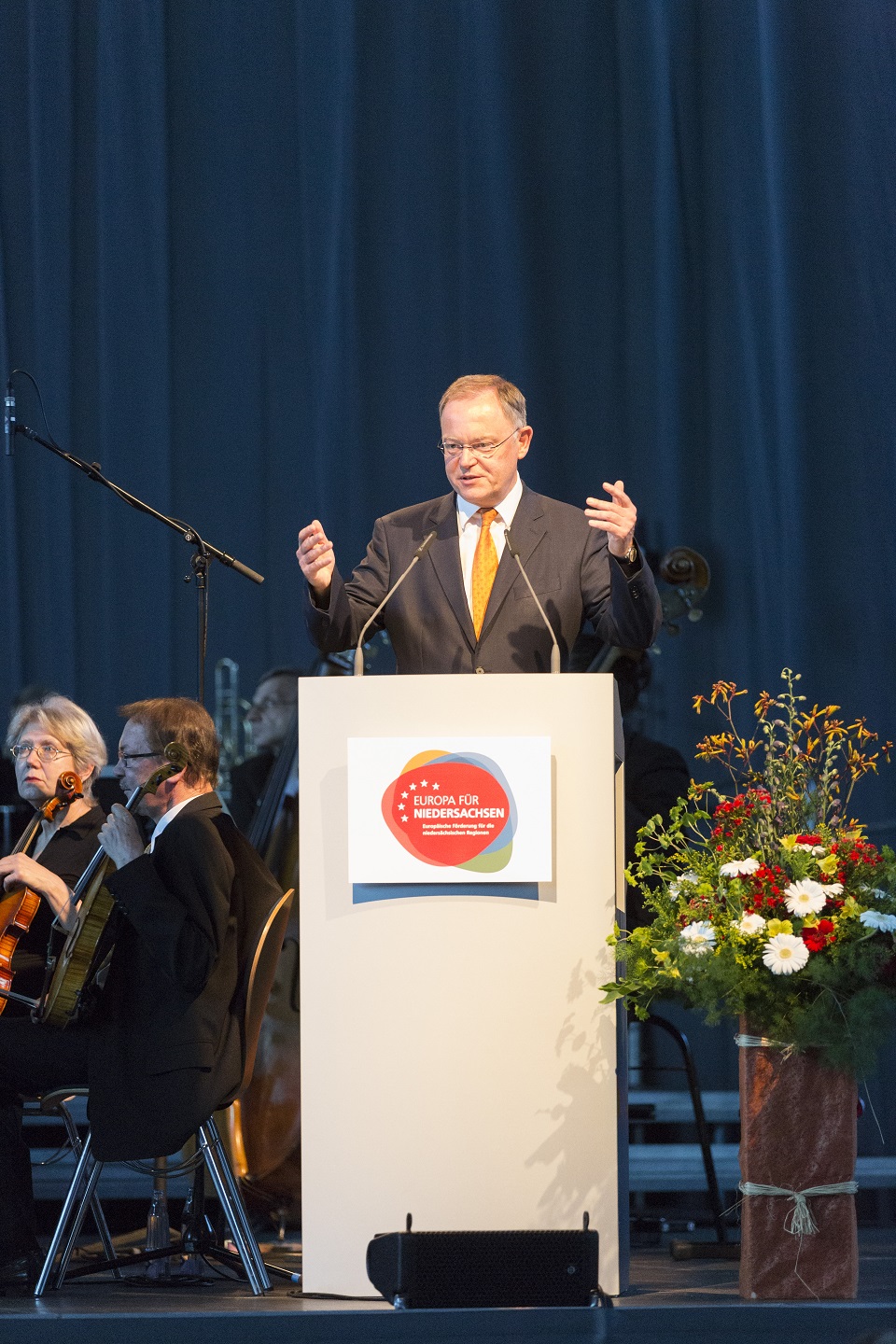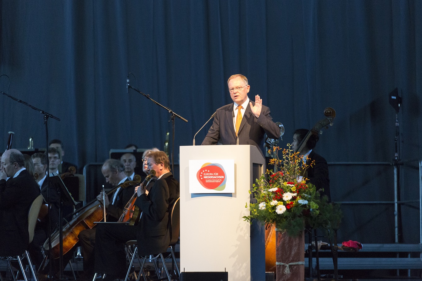 Vor den geladenen Gästen erläuterten der Ministerpräsident, Landwirtschaftsminister Meyer und die für Europa und regionale Landesentwicklung zuständige Staatssekretärin Birgit Honé noch einmal die Besonderheiten der neuen EU-Förderung in Niedersachsen. Zudem sprach der Publizist und Philosoph Richard David Precht zu den Gästen und betonte in seiner Festrede die Notwendigkeit, den zukünftigen Herausforderungen mit kreativen Lösungsansätzen zu begegnen. Für das musikalische Rahmenprogramm sorgte das Göttinger Symphonie Orchester.